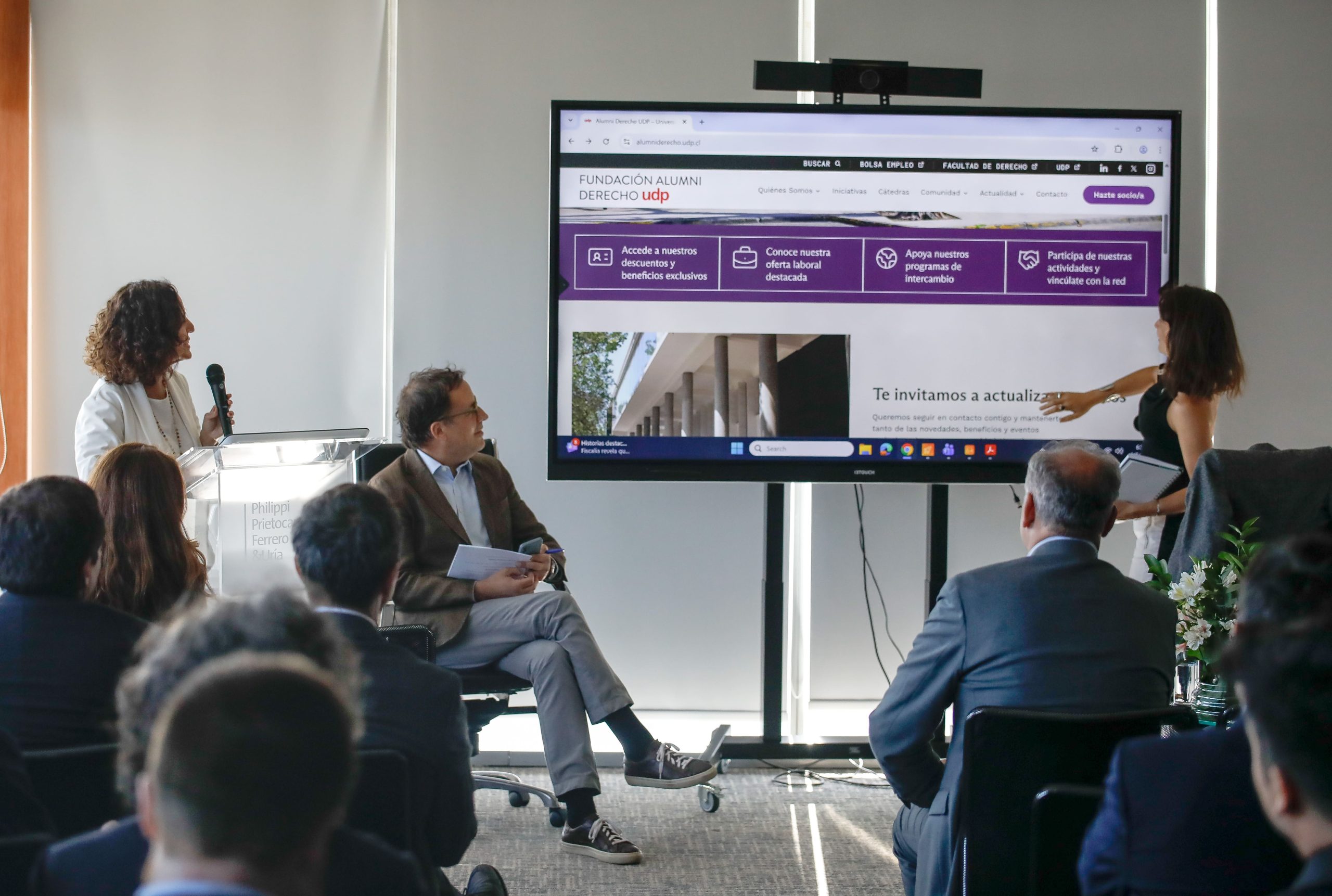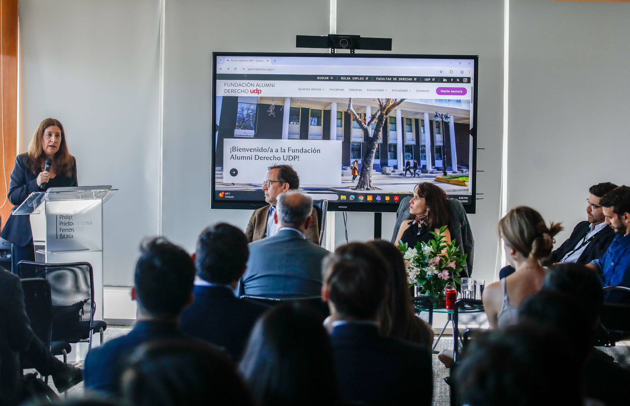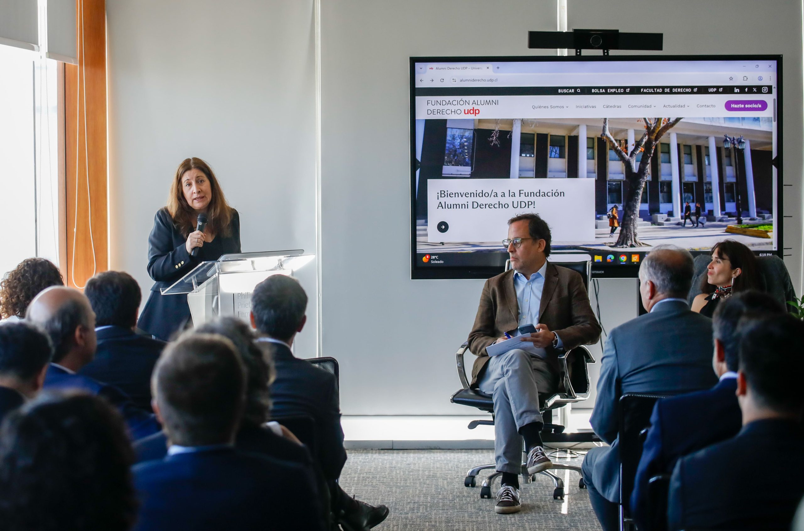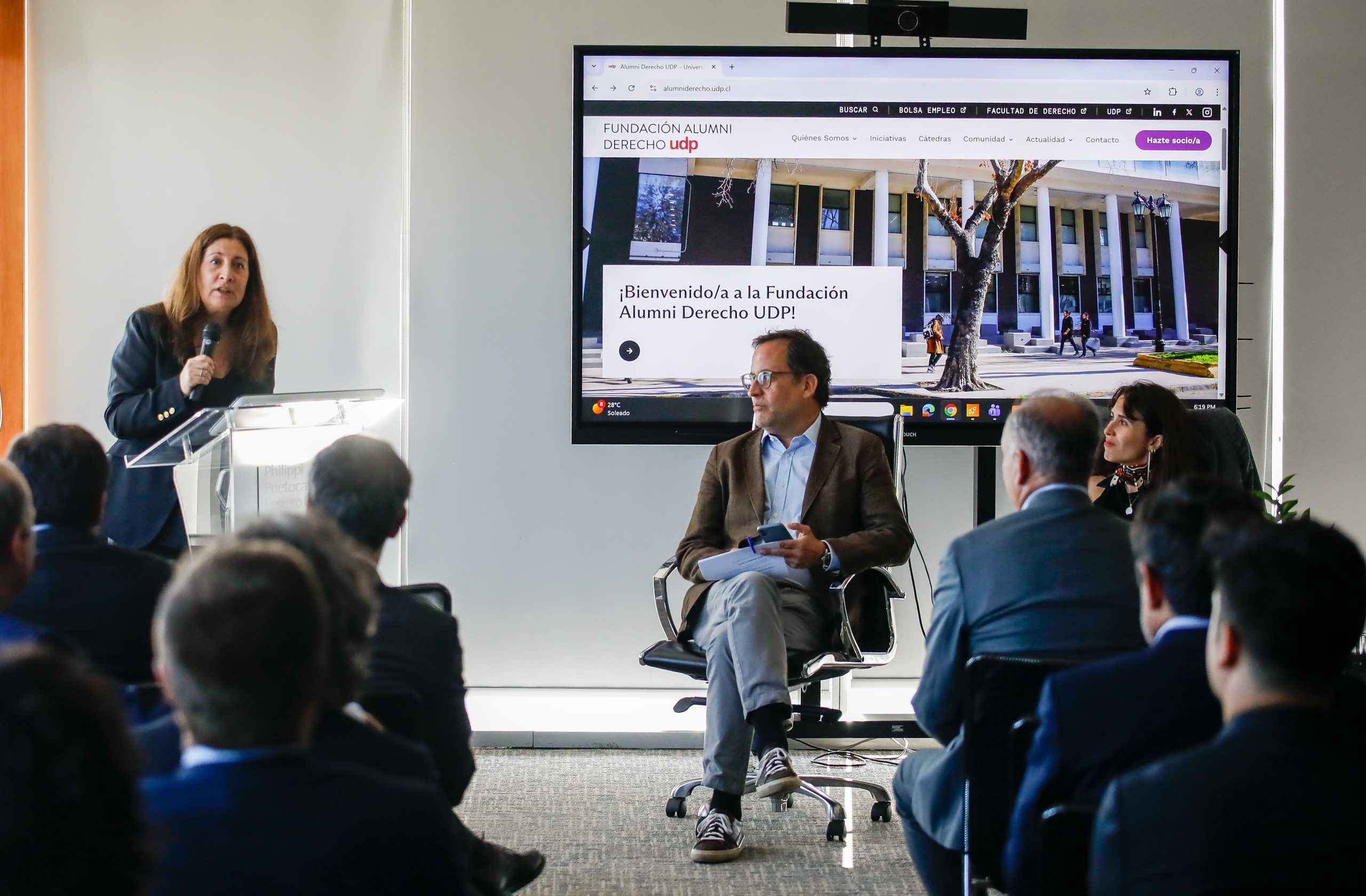 El evento también fue una oportunidad para informar brevemente sobre la marcha de la Fundación Alumni Derecho UDP y sus proyectos, y como espacio de encuentro entre alumni y amigos/as de la Fundación y de la Facultad de Derecho UDP.