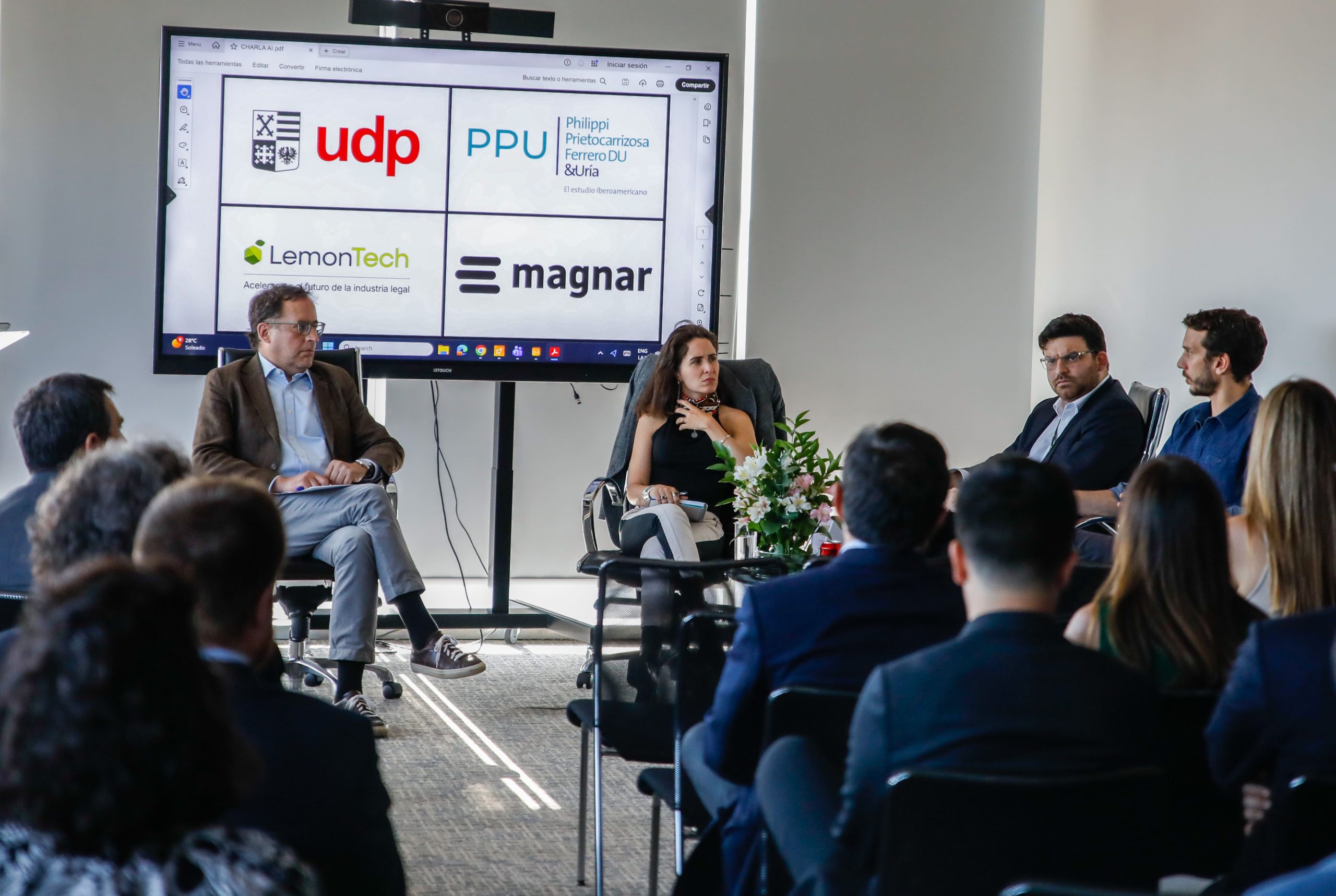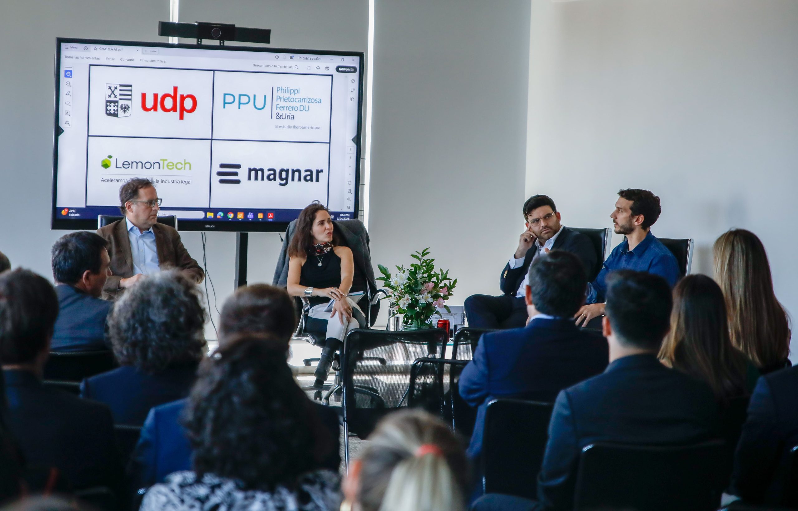 El miércoles 14 de enero se llevó a cabo la Cátedra de la Fundación Alumni Derecho de la Universidad Diego Portales: ¿Cómo se está usando la IA en la práctica del Derecho? en las oficinas de la firma Philippi Prietocarrizosa Ferrero DU & Uría (PPU) en Las Condes. La instancia contó con Rafael Mery, director de Inteligencia Artificial y Derecho UDP, como moderador y con María Jesús Ibáñez, directora del equipo de Innovación y Tecnologías de PPU; Andrés Arellano, CEO de Magnar; y Marco Antonio Orellana, Head of Legal Lemontech; como panelistas.